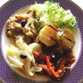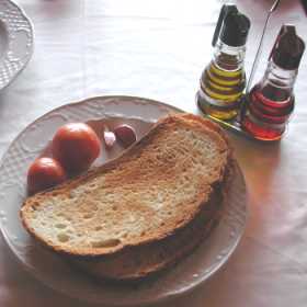 カリカリに焼いたトーストにニンニクやトマトをこすり付けて食べたのが、とても美味。