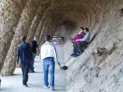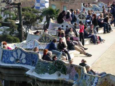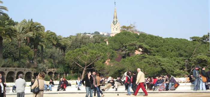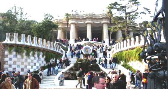ガウディが設計・作成したグエル公園は、地下鉄の駅から急な坂を登った丘の