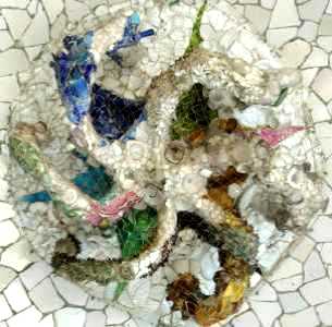 ガウディの他の作品、陶器製のカエル等不思議な雰囲気の造り物がありました。