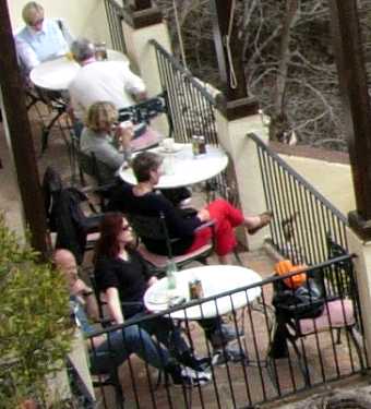 の男性数人が何かを飲んだりしていました。部屋からは斜面の下にある村を見下ろすことができ