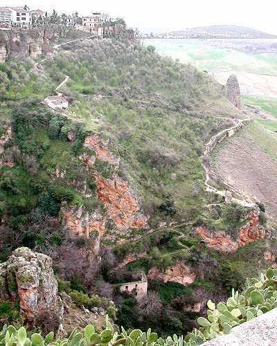 以上の狭い、目もくらむように深い峡谷を隔てて対峙する、二つの丘の上にそれぞれ広がる新市街