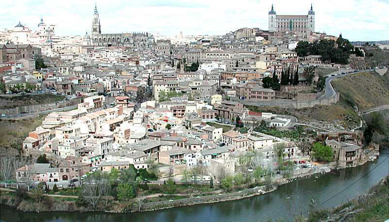 | エル・グレコの『トレドの風景の実景で、右の大きな建物がアルカサルです。 |