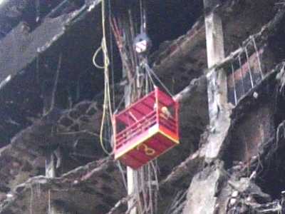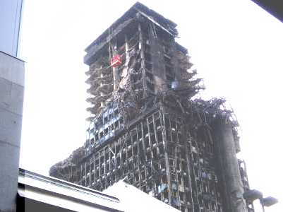 した。正に悲惨です。30階位ありそうなビルが鉄筋だけを残して焼け残っています。半ばより